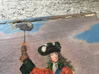 På konserveringsværkstedet på Amalienborg Slot har to konservatorer fra Kunstkonserveringen, Henrietta Havsteen-Mikkelsen og Ioana Rosca Tind, tidligere i år afsluttet behandling af malerier af karruselryttere for Rosenborg Slot.